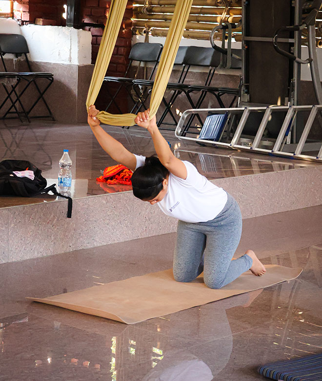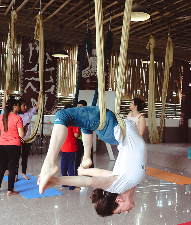 Elevate both your personal yoga practice and teaching abilities through our immersive 50-Hour Aerial Yoga Teacher Training Course (YTTC) in India. Crafted especially for yoga enthusiasts and certified yoga teachers who are eager to delve into the dynamic and exhilarating realm of aerial yoga. Our meticulously designed curriculum, experienced instructors, and nurturing learning environment form the ideal platform to master aerial yoga techniques, gain a profound understanding of its benefits, and earn your certification as an accomplished aerial yoga teacher.
